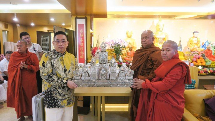 此外,尊者也被受邀请到许多国外如韩国、马来西亚、泰国、中国及越南推广和传播佛教。为了给更多佛教徒能礼敬佛陀及阿罗汉舍利子,他捐献舍利子给予许多国家仰奉,包括泰国,韩国,新加坡,台湾,印度尼西亚,辽国,越南,中国和马来西亚。于2019年7月9日尊者为华琪舍利子博物馆, 吉隆坡, 马来西亚开幕, 并慈悲慷慨捐献两千公斤各类珍贵的两千五百年释迦摩尼佛及阿罗汉舍利供奉于华琪舍利子文物馆。
